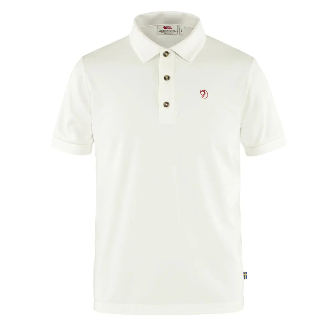 Short-sleeve Fjallraven pique shirt in quick-drying functional material that effectively wicks away moisture. Perfect for sweaty treks or trips to warmer climates. Classic design with low collar and three buttons in the front. Straight cut with slits on the side.