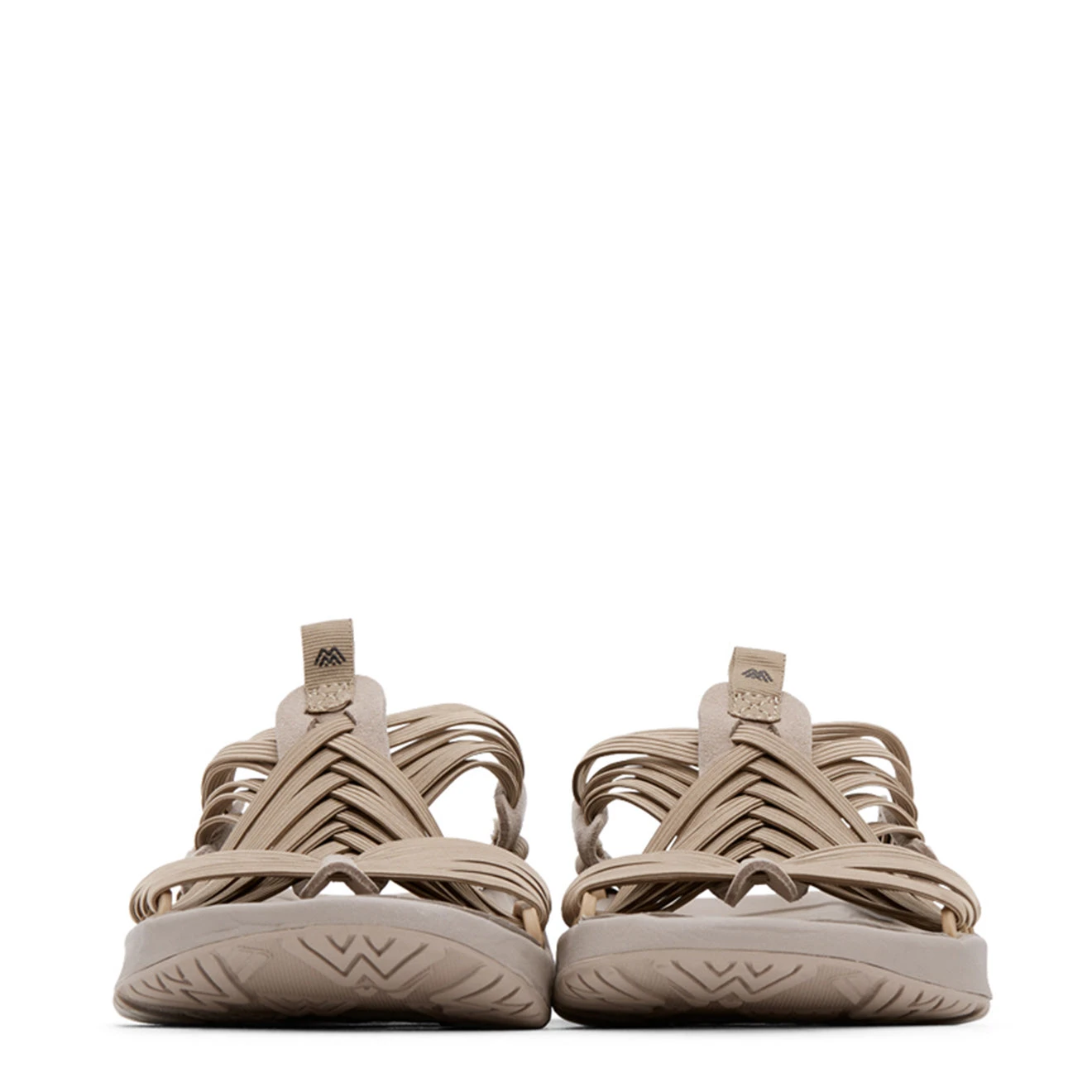 . Features include the hand-woven 6-strap recycled elastic upper, the signature M-grip outsole, and the anatomically correct footbed.