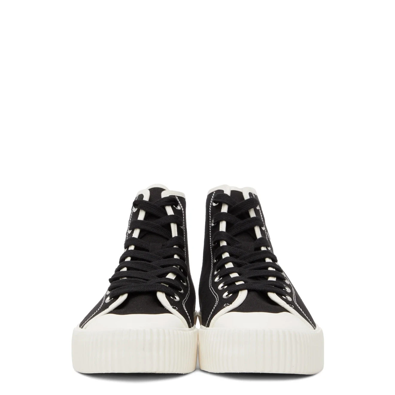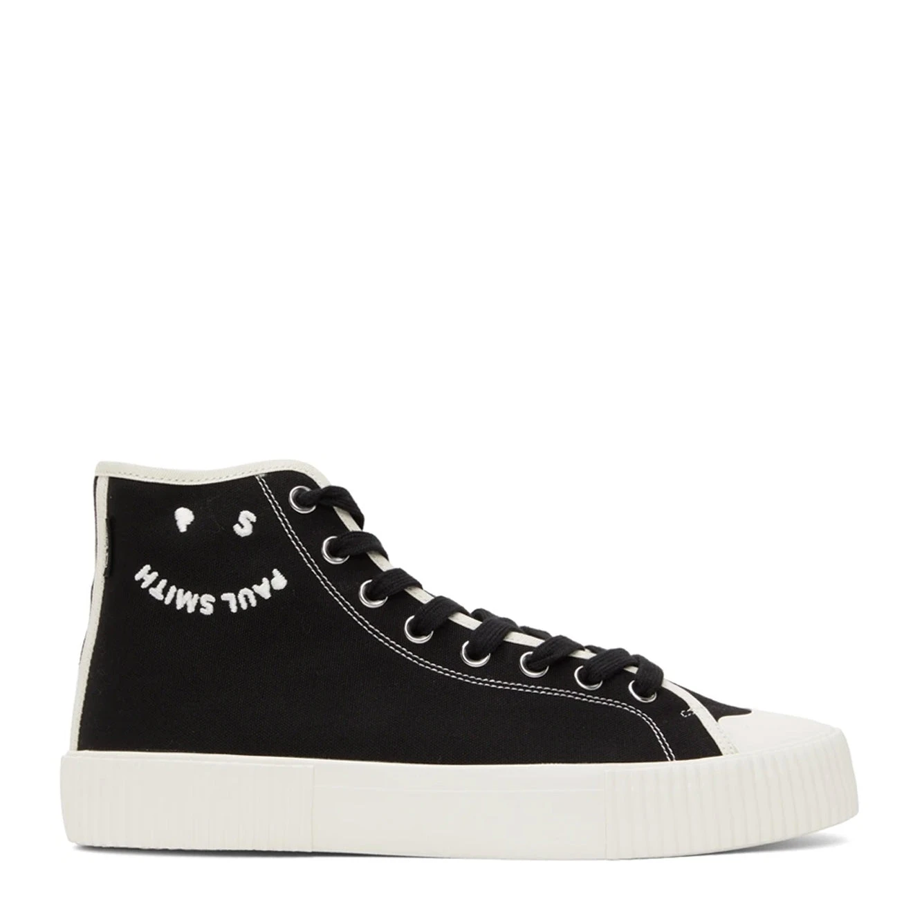 Made from 100% canvas uppers, these white ‘Kibby’ high-top trainers feature embroidered ‘Happy’ detailing on each side.