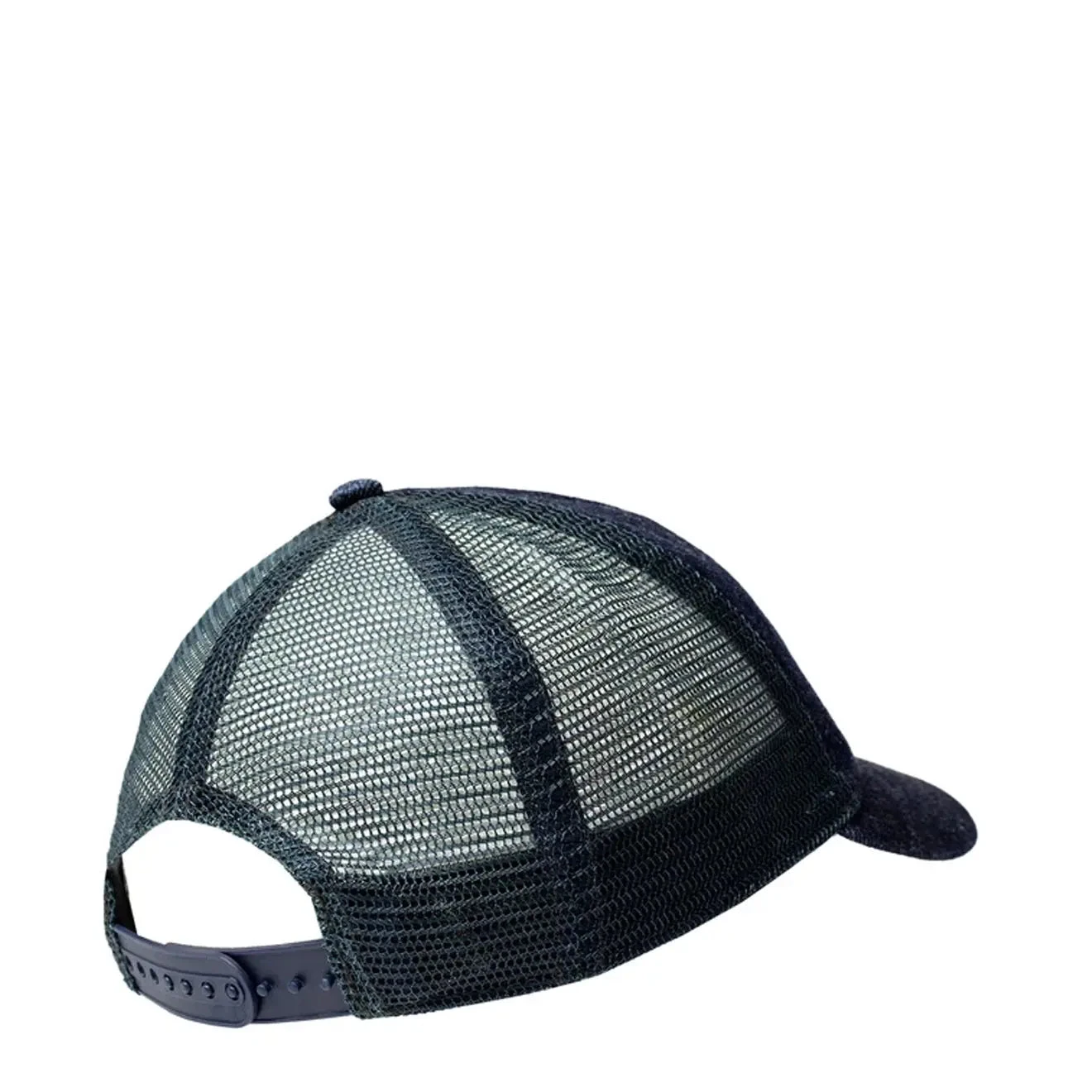 The Denim Mesh Trucker Cap from RRL by Ralph Lauren features a custom embroidered logo patch inspired by one of the brands’ first designs from 1993.