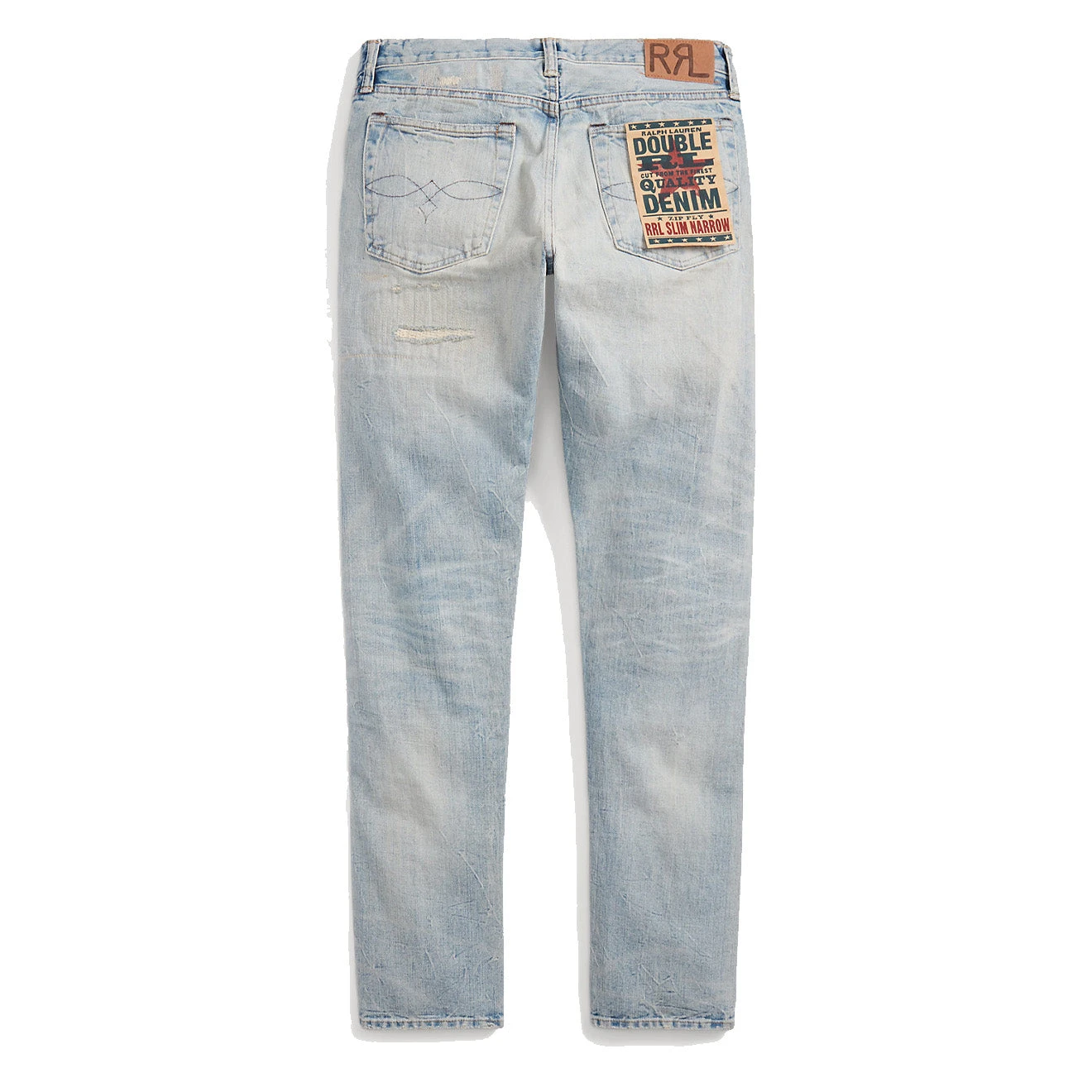 - Hand-set, chain-stitched waistband. Zip fly with a signature buttoned closure. American-made buttons, rivets and washer burrs. Five-pocket styling. “RRL” embroidery on the coin pocket. Natural twill pocket lining.
