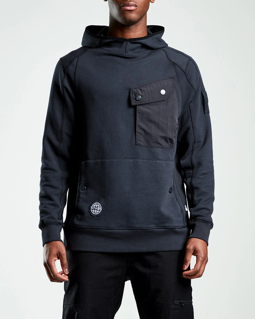 The Globe Pocket Hooded Sweat has been garment dyed in a relaxed fit, manufactured from 100% organic looped back cotton. It features an overdyed, ST95 woven patch on the left sleeve and tape detail, with integral signature seam stitching detail on the sleeves, side and front. In addition it has a front chest pocket and features a woven globe patch logo to the lower front.