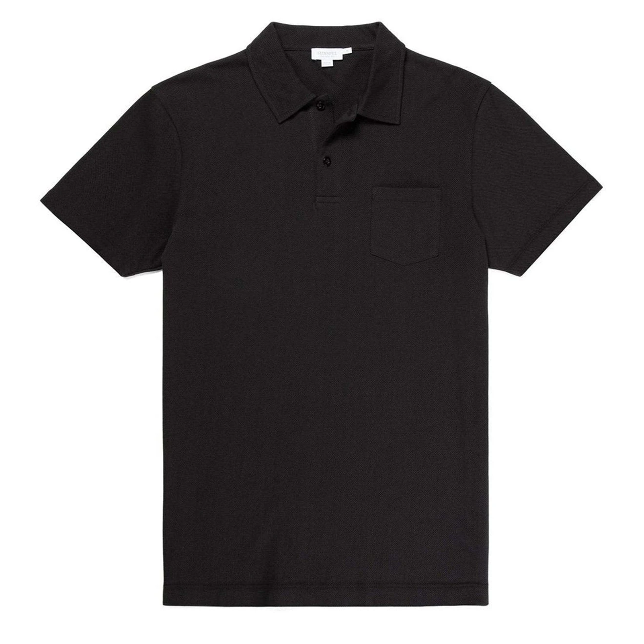 The Sunspel Short Sleeve Riviera Polo Black is constructed from 100% Cotton and features a slim fit, chest pocket and matching button closure.